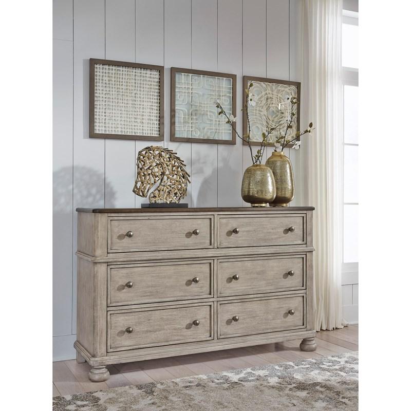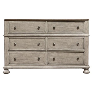 ASHLEY комод FALKHURST(коллекция AMERICAN LIFESTYLE).Стиль: американский Traditional.Тип: комод для спальни широкий с шестью выдвижными ящиками,верхние обиты фетром на открытых ножках.Цвет: серый/ коричневый.Отделка: в два тона шпон акации и ореха,металлическая фурнитура цвета тёмная бронза.Размеры,мм:ш.1524/г.457/в.965.