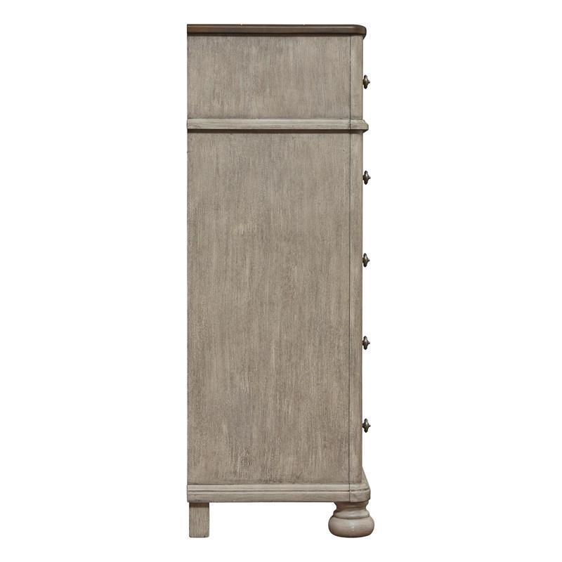ASHLEY комод FALKHURST(коллекция AMERICAN LIFESTYLE).Стиль: американский Traditional.Тип: комод для спальни высокий с пятью выдвижными ящиками,верхние обиты фетром на открытых ножках.Цвет: серый/ коричневый.Отделка: в два тона шпон акации и ореха,металлическая фурнитура цвета тёмная бронза.Размеры,мм:ш.915/г.457/в.1270.