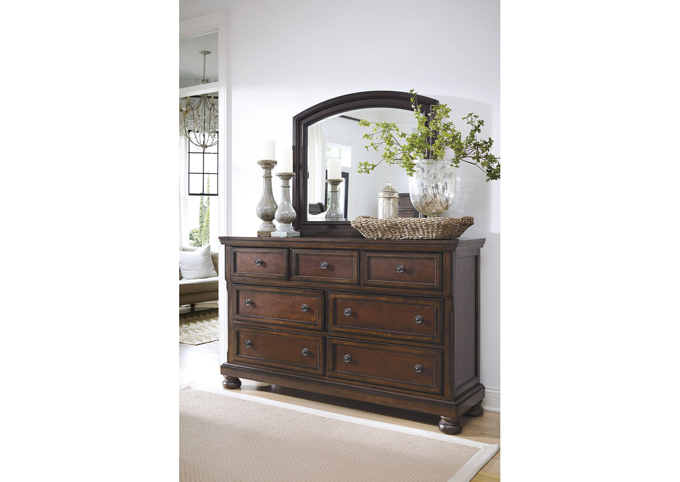 ASHLEY зеркало PORTER (коллекция AMERICAN LIFESTYLE).Стиль: американский Casual.Тип: зеркало для спальни/гостиной к комоду.Цвет: коричневый.Отделка: шпон вишни.Размеры,мм,ш.1073/г.45/в.927.