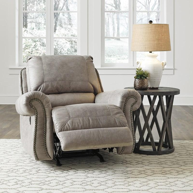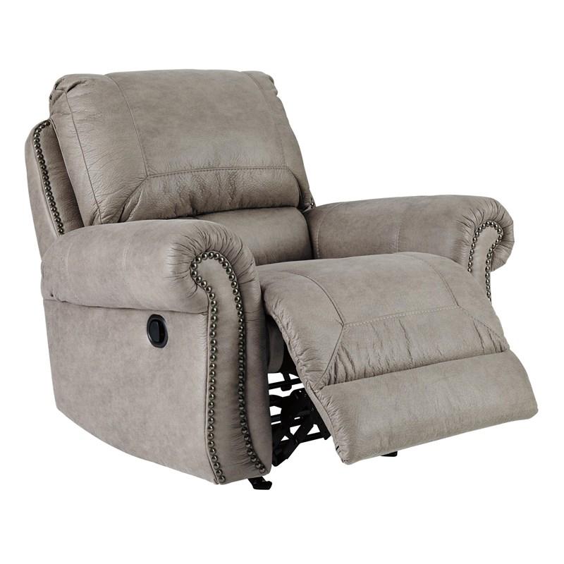 ASHLEY кресло OLSBERG( коллекция AMERICAN LIFESTYLE) .Стиль: американский Vintage Casual.Тип: кресло-качалка реклайнер с механическим приводом.Цвет:серый.Обивка: 3% экокожа,97% полиэстер(ткань),категория высшая,одобрена по высоким американским стандартам качества AHFA(износостойкость,долговечность).Отделка: декоративные металлические мебельные гвозди.Размеры,мм:ш.1092/г.1016/в.1016.