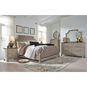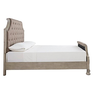 ASHLEY кроватьFALKHURST ( коллекция AMERICAN LIFESTYLE).Стиль: американский Traditional.Тип: панельная двуспальная кровать King Size с мягкими изголовьем и изножьем,размер спального места,мм: ш.1950/г.2050,ортопедическая решётка и матрас в стоимость не входят. Цвет: серый/коричневый.Обивка: сложнофактурная ткань 100% полиэстер,категория высшая,одобрена по высоким американским стандартам качества AHFA(износостойкость,долговечность).Отделка: шпон акации; стёжка "капитоне"; мебельные пуговицы.Размеры,мм:ш.2058/г.2311/в.1499.