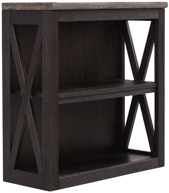 ASHLEY стеллаж средний TYLER CREEK (коллекция AMERICAN LIFESTYLE).Стиль: американский Casual.Тип: многофункциональный стеллаж, с одной центральной регулируемой открытой полкой.Цвет: серо-коричневый/чёрный.Отделка: двухцветная текстурная; искусственно состаренный шпон дуба; дощатая столешница.Размеры,мм:ш.750/г.300/в.760.
