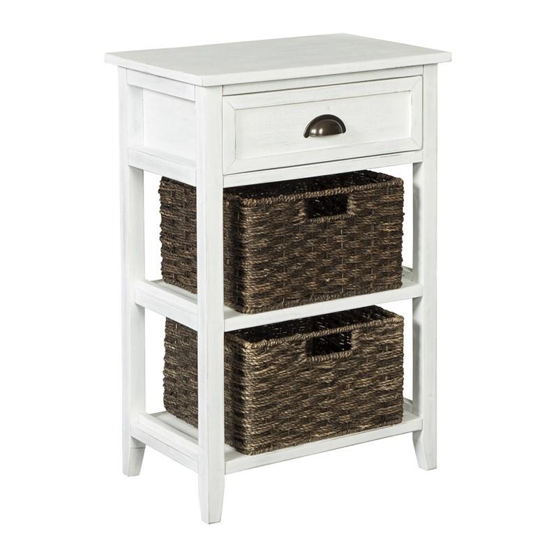 ASHLEY стол OSLEMBER (коллекция AMERICAN LIFESTYLE).Стиль: американский Casual.Тип: стол для хранения с одним выдвижным ящиком, двумя открытыми фиксированными полками и двумя плетёными корзинами.Цвет: доступны: белый/коричневый.Отделка: искусственно состаренная; бронзовая металлическая фурнитура.Размеры,мм:ш.457/г.305/в.705.