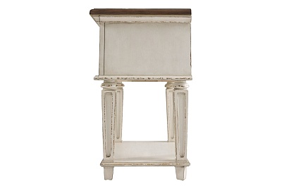 ASHLEY тумба REALYN (коллекция AMERICAN LIFESTYLE).Стиль: американский Vintage Casual.Тип: тумба прикроватная с одним выдвижным ящиком,и одной полкой.Цвет: слоновая кость/коричневый.Отделка: антикварная искусственно состаренная двухцветная;металлическая бронзовая фурнитура.Размеры:ш.610/г.406/в.686.