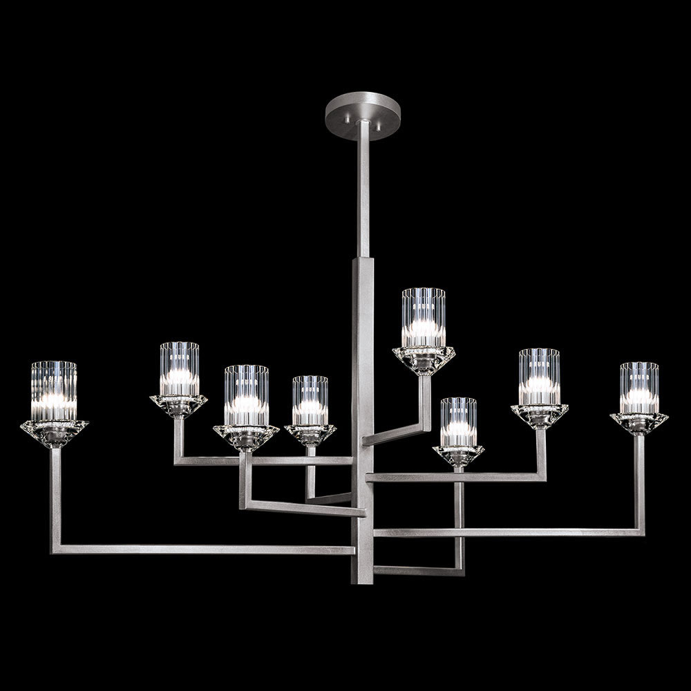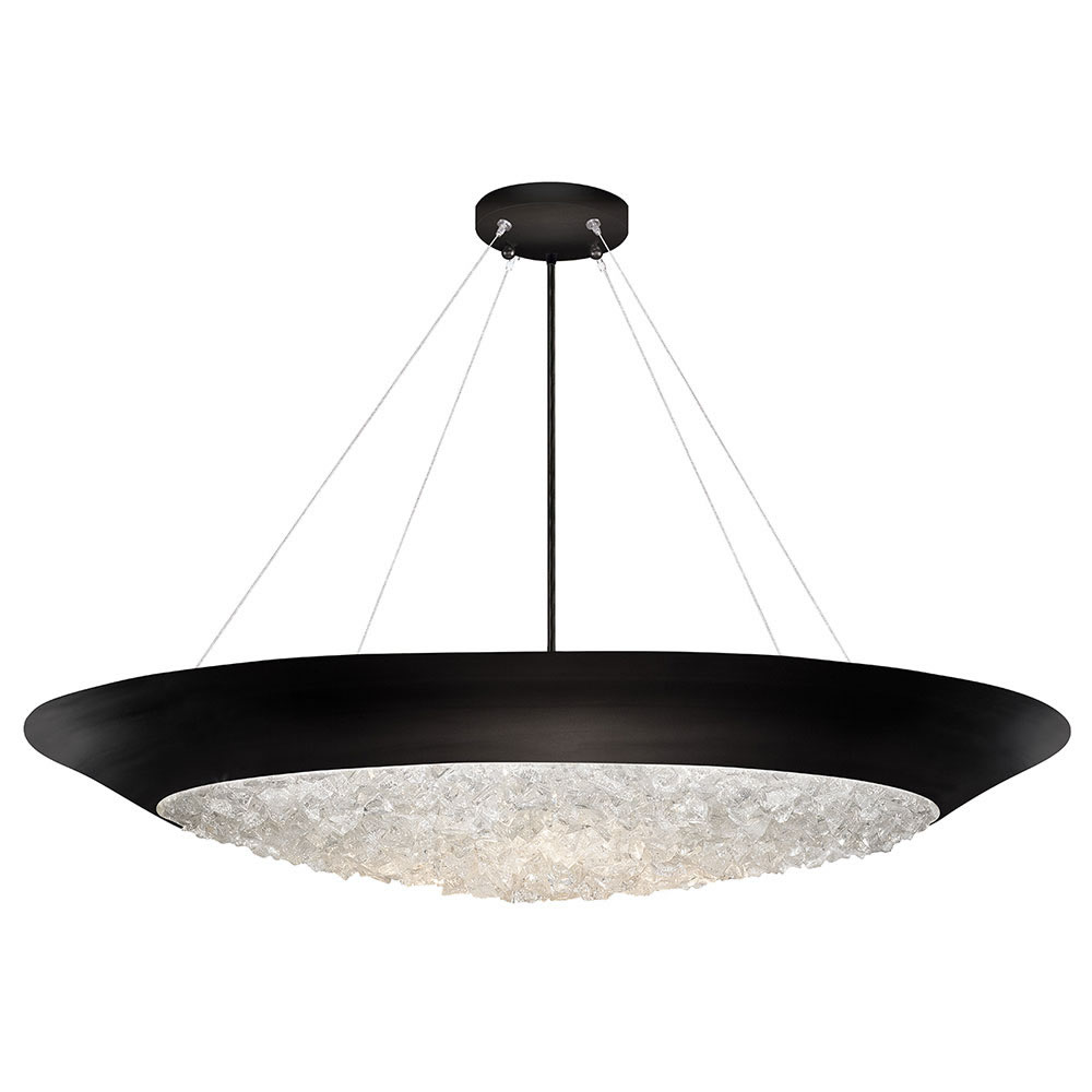 Arctic Halo – очень лёгкая и воздушная коллекция, светильники в которой представляют собой базовые, чуть ли не минималистичные, формы, сдобренные горстью маленьких «ледяных» осколков. Роль арктического льда, конечно же, здесь играет потрясающего качества хрусталь, вырезанный вручную в неправильные формы и будто бы хаотично опоясывающий корпус светильника. Словно лунный нимб в ночном небе, тысячи этих маленьких хрусталиков преломляют и отражают свет, рассеивая его в пространстве. Эту коллекцию создал главный художник по стеклу компании Fine Art Lamps, Фрэнк Энглсби (Frank Englesby), вдохновлённый воспоминаниями из своего детства, когда ему удалось побывать на Полярном круге. Образ, который Фрэнк использовал для этой коллекции, — яркий лунный свет, проходящий сквозь вихрь невероятно лёгких снежинок, витающих под белоснежными перистыми облаками. Для этих моделей предлагается отделка серебряной фольгой, золотой фольгой или элегантной матовой чёрной краской. В коллекции – разнообразные подвесы (кольцеобразные, круглые цилиндрические и в виде чаши), потолочные модели на ножке, а также бра в двух вариантах. Подвесные и потолочные модели, которые выполнены в форме цилиндрического барабана и кольца, укомплектованы также плетёными рассеивателями из белой ткани.
