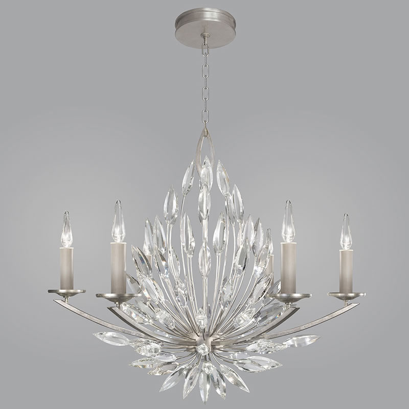 Образ коллекции Lily Buds строится на обилии гранёных кристаллов. Яркие и изящные, светильники из этой коллекции похожи на букет фантастических прозрачных цветов или на бурный всплеск воды, словно застывший во времени. В этой коллекции представлено множество подвесных светильников, как люстрового типа, с рожками, так и более компактной формы, где лампочки прячутся за хрустальными «лепестками». Кроме подвесов, в коллекции также представлены бра различной компоновки и маленький потолочный накладной светильник. В комплект любого светильника входят необычные лампы накаливания: такие не найти в магазинах, они производятся специально для Fine Art Lamps. Хрусталь высочайшего качества, подсвеченный изнутри гранёными лампами – это потрясающее зрелище, это бесконечная игра бликов, которая завораживает и потрясает. Эти милые и нежные светильники украшены отделкой из серебряной фольги.