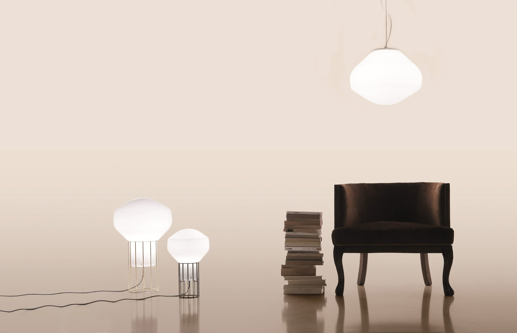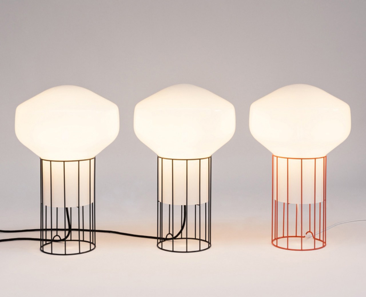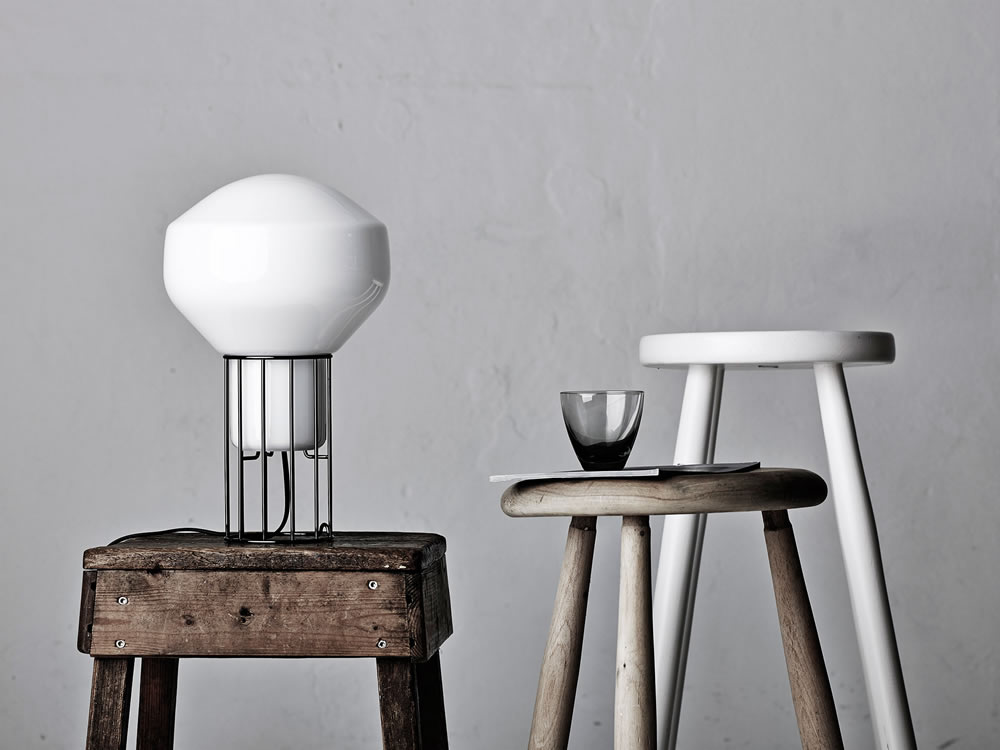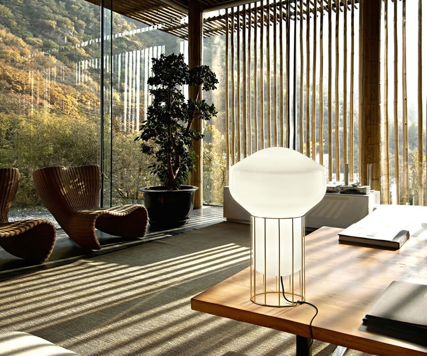Коллекция светильников Fabbian Aerostat создана дизайнером Guillaume Delvigne, она состоит из подвесных, настенных и потолочных светильников в трех разных размерах. Отделка арматуры доступна в никеле и латуни. Разрабатывая такой светильник, дизайнер преследовал идею создания иллюзии того, что объект легче воздуха. Особенно остается такой эффект при настольной лампе, которая, словно, стремится вырваться из металлической клетки.