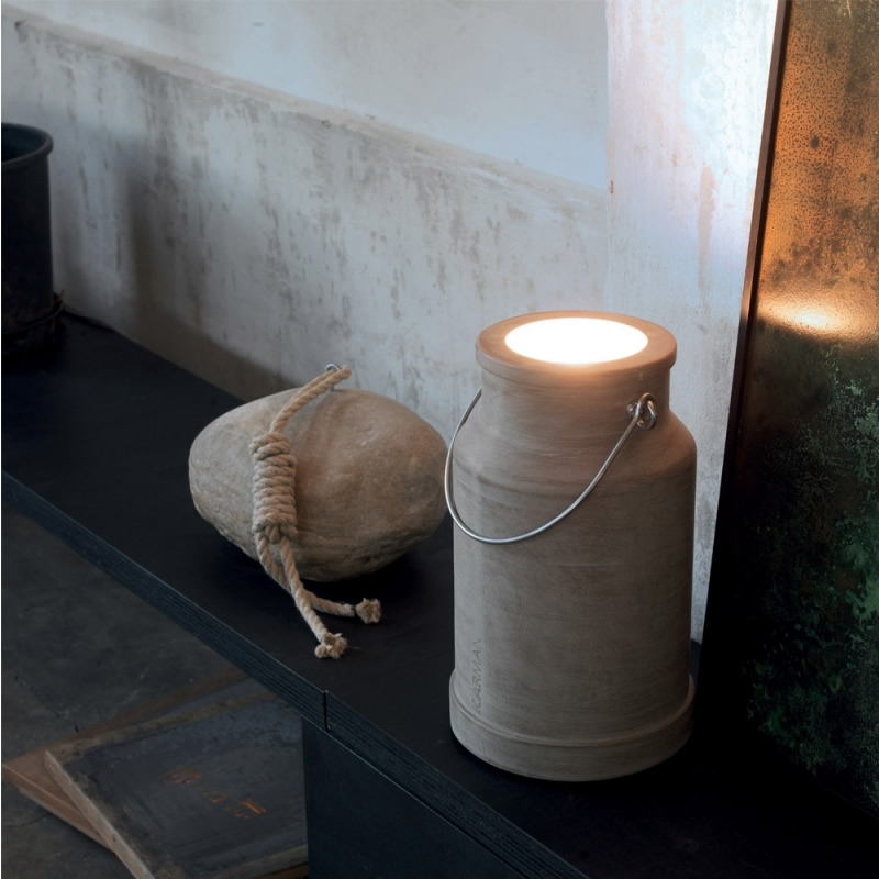 Via Lattea – напольный светильник в виде маленького молочного бидона, словно уносит с собой в мир детства – разбитых коленок, вечного лета и свежего парного молока. На улице или в доме, он станет незаменимым источником света и хорошего настроения.