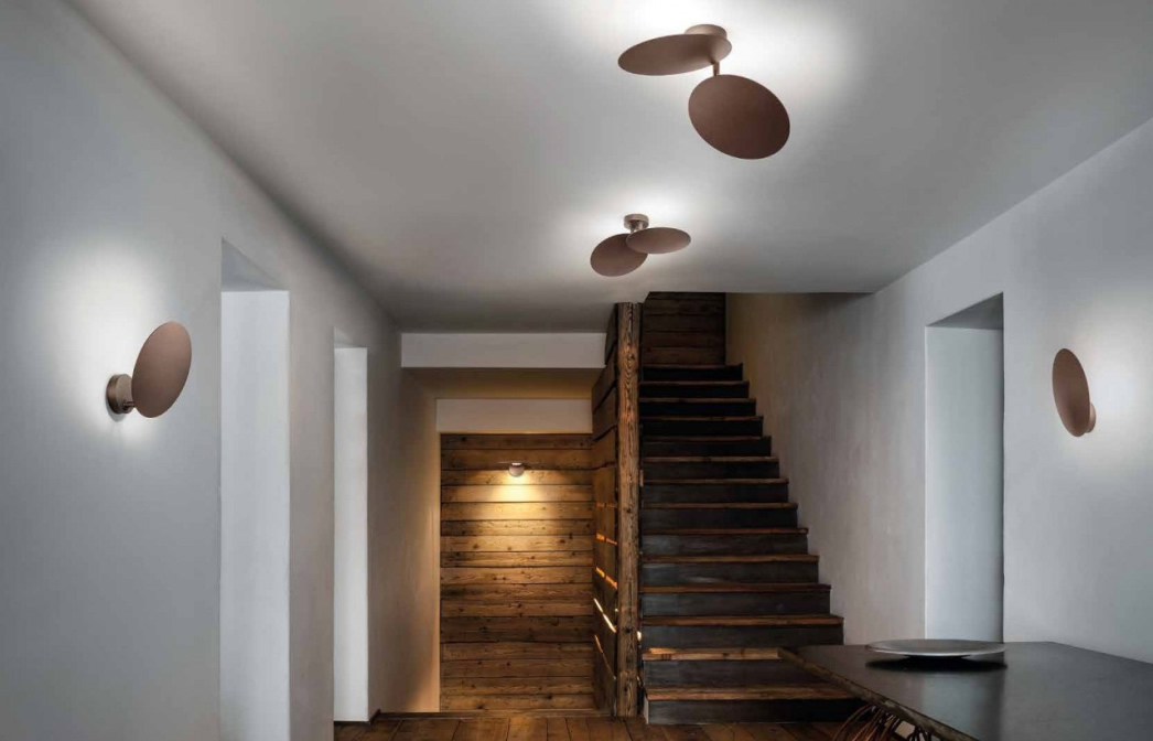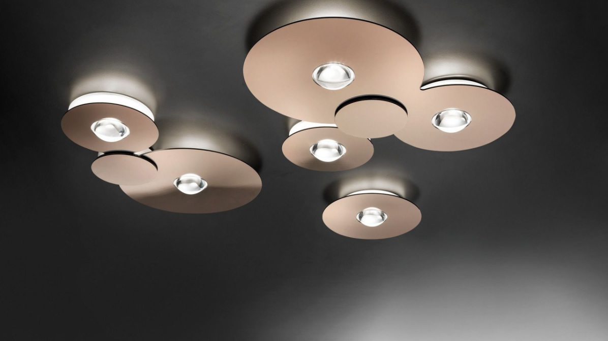 Bugia – простой по форме потолочный светильник. Выглядит как диск, в центре которого расположена выпуклая линза со светодиодом. За счет этой линзы формируется яркий точно направленный световой поток. Модель может быть, как одиночной, так и тройной, где диски пересекаются между собой.