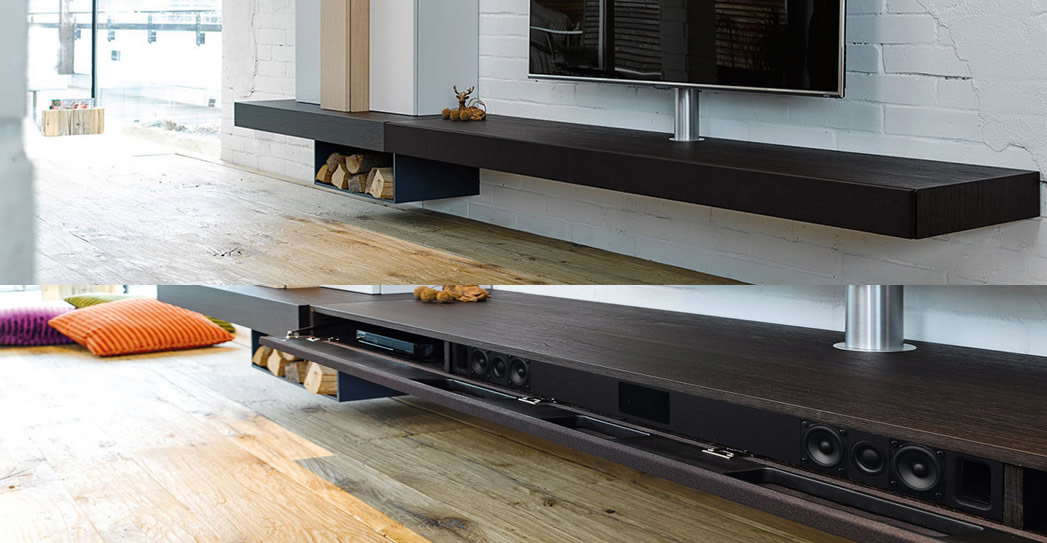 Аудио/видео аппаратура в ТВ-мебели Spectral может сочетаться с наружно расположенной акустикой напольного, настенного исполнения, скрытой или видимой визуально, но практически во всех сериях закрытой мебели предусмотрена возможность использования (или изначально заложена в комплектации) блочной акустики объемного звука. Важно: Все акустические системы для Spectral изготавливаются ведущим немецким производителем Hi-Fi акустики Canton® для аудио/медиа систем и домашних кинотеатров компанией Canton Elektronik GmbH + Co. KG. В некоторых сериях закрытой ТВ-мебели Spectral установлены док станции для зарядки и использования iPhone® и iPad® (серия Scala)или iPhone®, iPod® и iPad® (серия Cocoon) с автоматическим подключением коммутаторов к скрытой (или внешней) акустике, а также управления аудио/видео системами с iPhone,iPаd, iPodTouch, смартфонов на платформе Android при интеграции с обучаемым пультом Spectral.