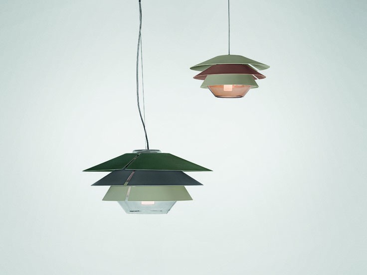 Overlay S – подвесной светильник из выдувного стекла, дополнен тремя съемными коническими отражателями разных цветов. Выбирая нужный цвет отражателя вы можете регулировать уровень освещения по своему желанию. Доступен в трех размерах.