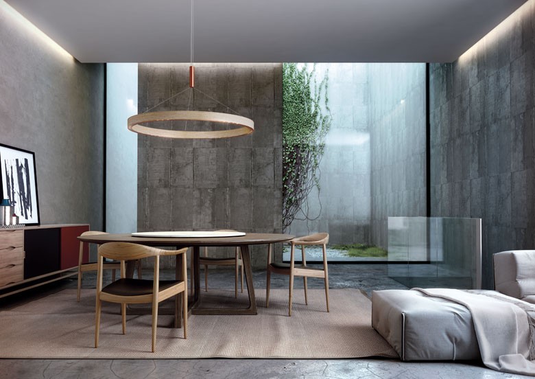 R2 – подвесной светильник в виде парящего кольца. Материал алюминий, источником света являются LED модули, расположенные по периметру кольца. Отделка возможна из меди, бронзы или натуральный дуб. Доступен в трех размерах.
