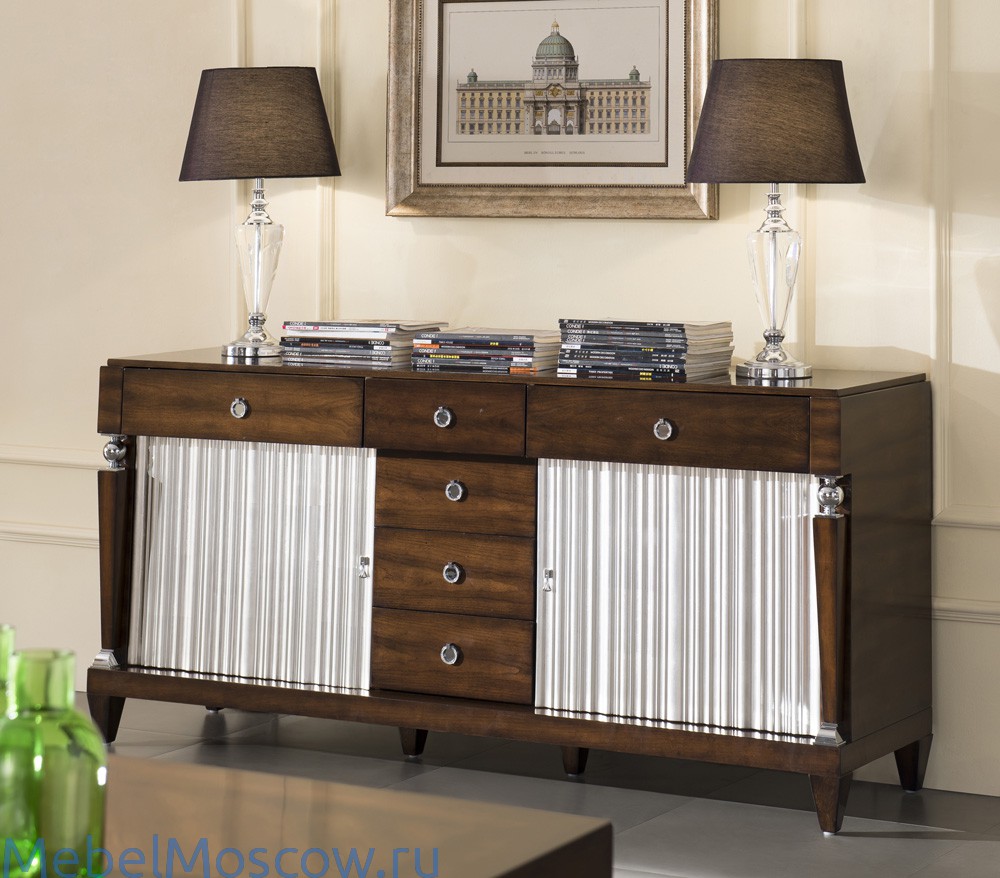 Она воплощает в себе модный стиль неоклассика, который включает как элементы классического стиля, так и современного. Шпон вишни, а также сусальное серебро и кристаллы, используемые в отделке, как нельзя лучше подходят для формирования образа коллекции — стильной и современной. Актуальные изделия коллекции легко интегрируются в различные стили: классика, неоклассика, ар-деко.