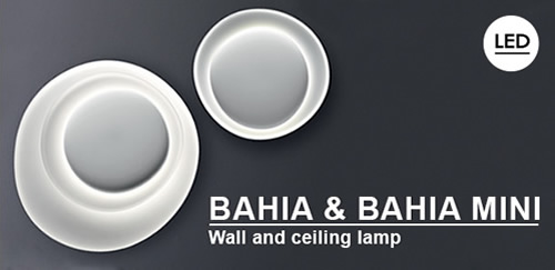Две поверхности с нерегулярным, перекрывающимся профилем, образуют форму, которая напоминает вид небольшого архипелага. Две версии BAHIA и BAHIA MINI доступны как в потолочном, так и настенном варианте, могут быть использованы в композиции. Доступна версия светильников со светодиодными лампами.
