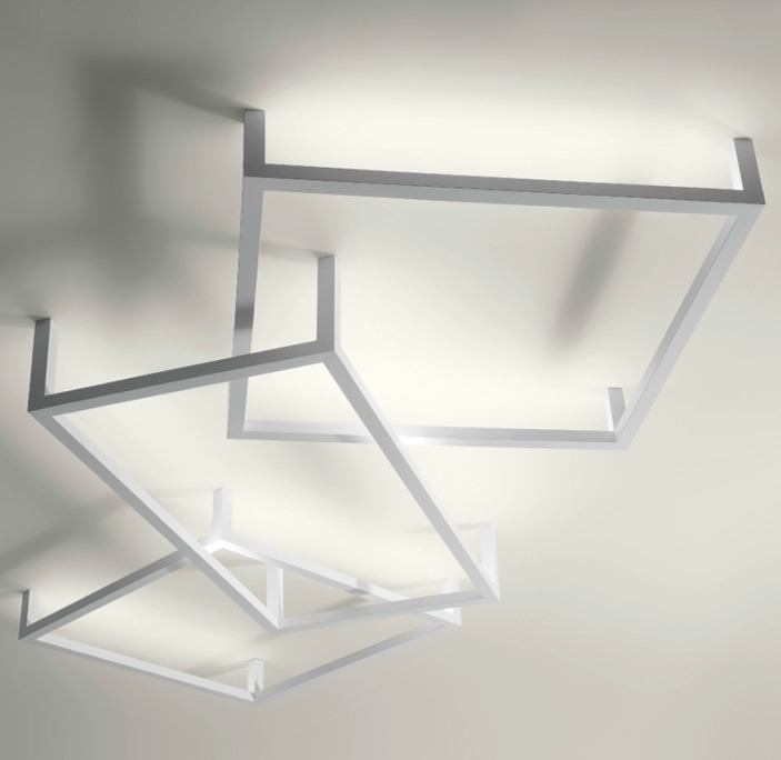 Коллекция Framework – это двенадцать моделей светильников в форме прямоугольников и квадратов размером 186 см х 90 см, 127 см х 65 см и 127 см х127 см. Накладные (настенные и потолочные) модели различаются еще и высотой – они отстоят от поверхности стены или потолка на 13,3 см, 22,3 см или 31,3 см.