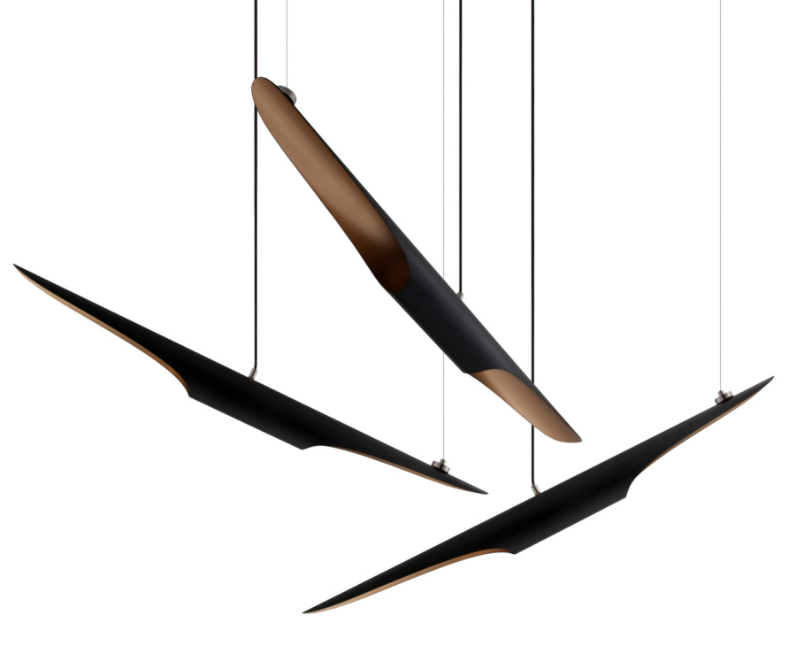 В коллекцию Shatter входят три подвеса разной формы, три накладных потолочных модели и настенный светильник.