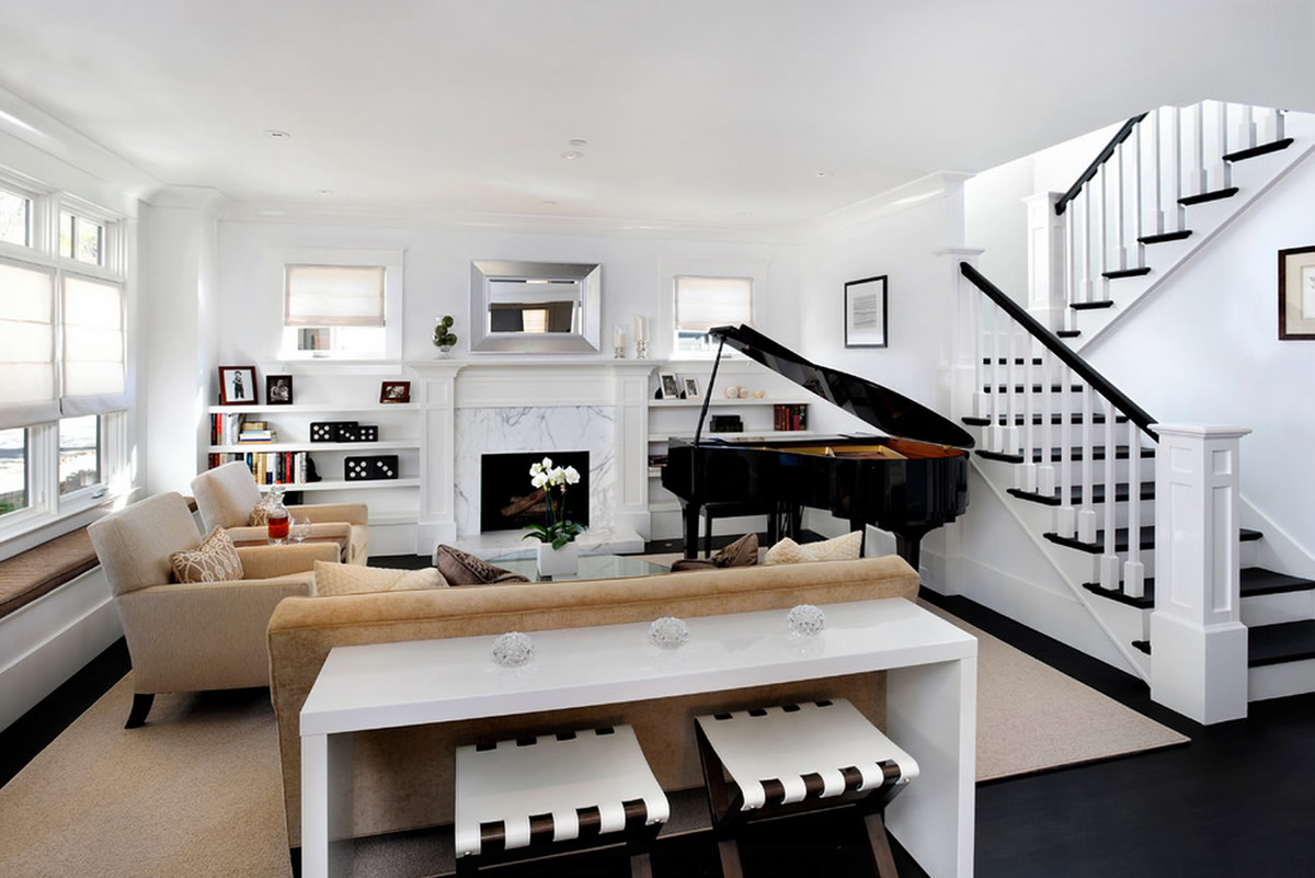 Торцевая сторона лестницы до первого пролета представляет собой часто довольно внушительных габаритов пространство, которое можно скрасить консолью. Оформите консоль под лестницей, поставив на нее красивые композиции из декора и элементов освещения. Используйте игру нескольких высот, чтобы внимание переключить со скучной однотонной стены на этот элемент интерьера. Эта консоль может служить местом для хранения мелких, но не слишком частых в употреблении предметов. е именно здесь расположенной консоли и не покупайте много мелких элементов декора.