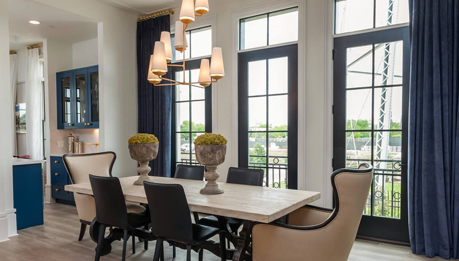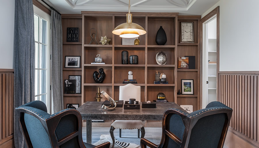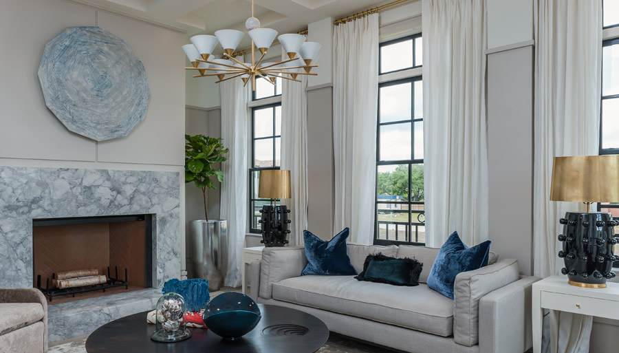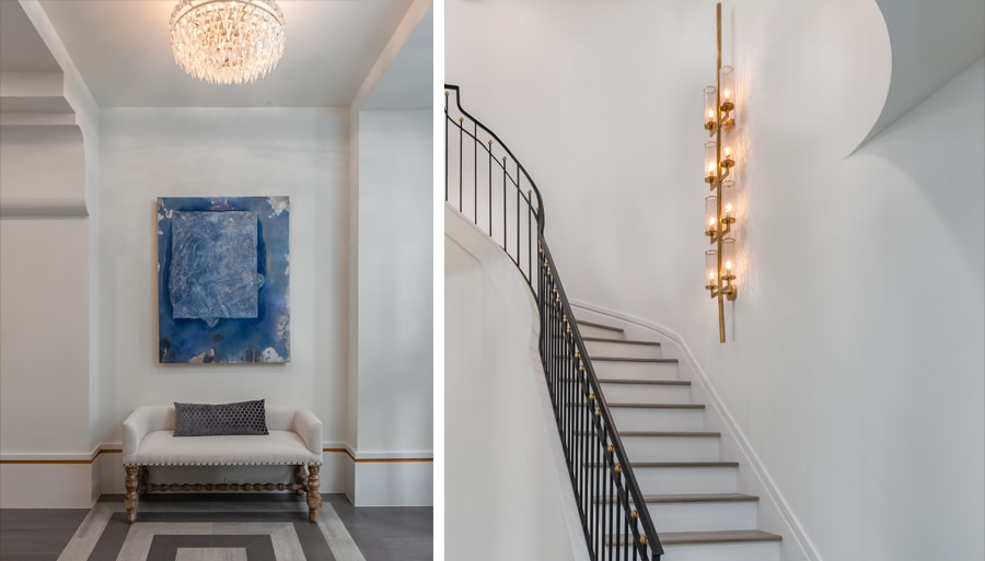 Настоящим произведением дизайнерского мастерства, демонстрирующим самое пристальное внимание к деталям, является оформление светильниками американского бренда Visual Comfort интерьера одного из таунхаусов в Хьюстоне, штат Техас. В холле потолочный светильник Trillion Flush Mount из коллекции дизайнера Joe Nye создает блестящее первое впечатление, задавая тон всему интерьеру дома. Для освещения лестницы было выбрано бра Liaison Statement Sconce из коллекции Kelly Wearstler, скульптурный дизайн которого перекликается с формой лестничного ограждения. В кабинете яркие идеи будут скорее приходить в голову под таким выразительным светильником Whitman Large Pendant из коллекции Thomas O'Brien.