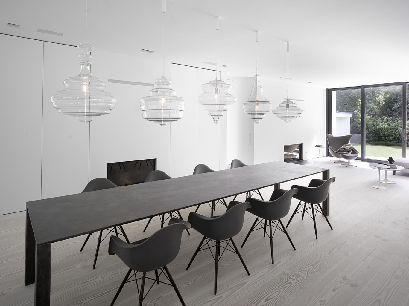 Помимо линии простых, привычных глазу осветительных приборов впечатляют уникальные дизайнерские композиции из стекла, которые можно назвать настоящими «световыми скульптурами». Объект Рене Рубичека (René Rubíček) «And Why Not?» весь составлен из острых игл, напоминающих вспышки молнии. Инсталляция Nodules – причудливый плод фантазии британского дизайнера Росса Лавгроува (Ross Lovegrove). Сплавленные в узелки хрусталики гроздьями вырастают из пола на темных металлических стержнях. Освещенные издали, они будто бы висят в воздухе.
