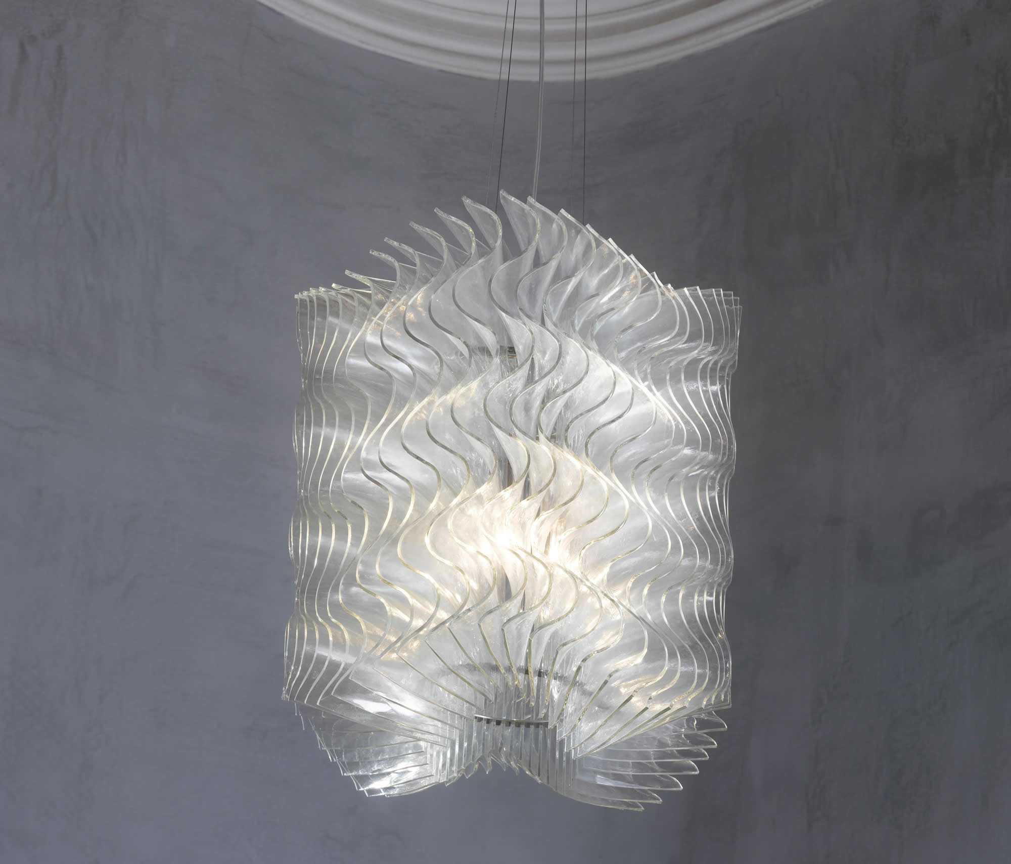Например, Житка Каменкова Скурава (Jitka Kamencová Skuhravá) в композиции Mist подражает конденсированным капелькам воды в облаке тумана. Подсвеченные сверху переливающиеся пластинки свисают на стальных нитях, вызывая эффект мягкого, растворяющегося света. Люстра оформляет роскошный танцевальный зал в отеле Park Hayatt в Цюрихе. Иллюзия застывших в воздухе дождевых капель лежит в основе проекта Silver Rain того же дизайнера. Благодаря тончайшему прозрачному серебряному покрытию стеклянные струи отражают свет и окружающий интерьер.